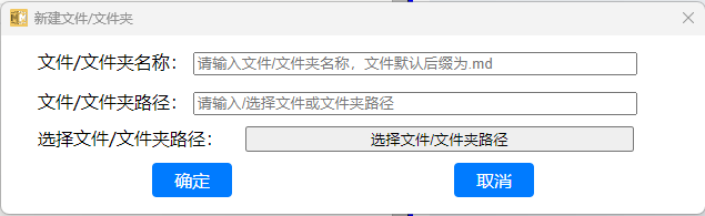 文件/文件夹名称,如果是创建文件夹,则不需要后缀,如果是创建文件,则需要输入文件类型,如果不输入,默认后缀是.md,