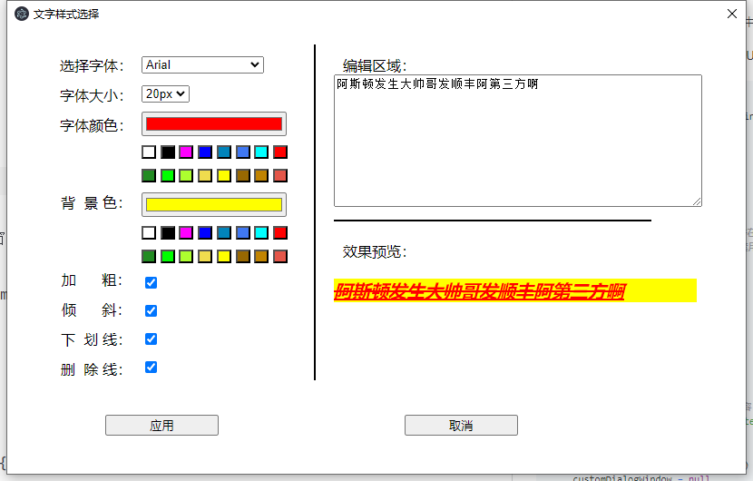 支持选择特定的字体,插入到文本中,然后渲染成html。